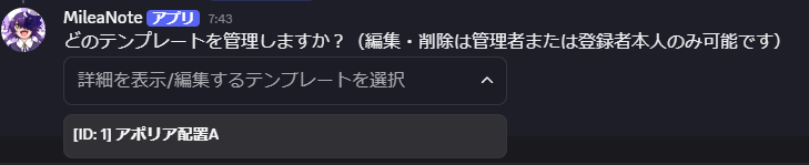 - 管理したいテンプレートを選ぶと、内容が表示されます。
